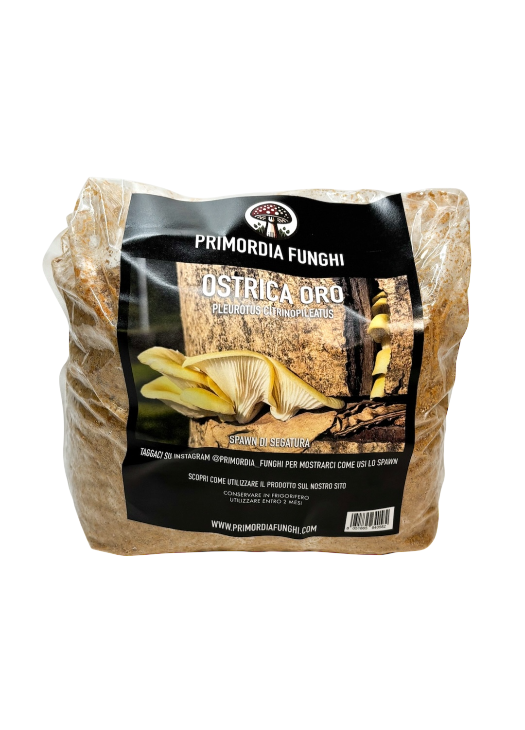 Il nostro spawn di segatura di Ostrica Oro è progettato per essere usato su substrati come la paglia o per inoculare tronchi di legno di latifoglia.